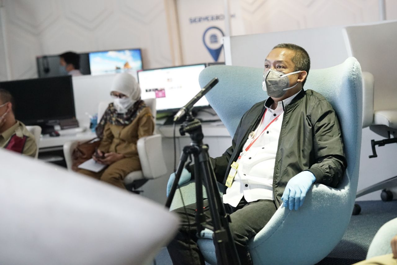 Wakil Ketua Gugus Tugas Covid-19 Kota Bandung Yana Mulyana saat telekonferensi dengan Sekretariat Presiden, Senin (27/4/20). by Humas Pemkot