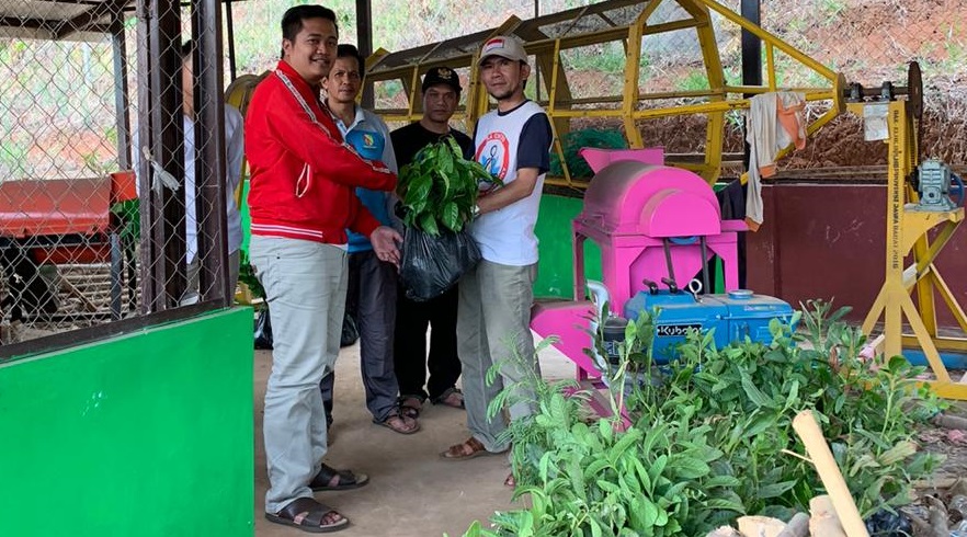 Anggota DPRD Kab Bandung Fraksi PDI Perjuangan M Luthfi Hafiyyan secara simbolis menyerahkan bantuan bibit pohon dari BPDAS Cimanuk-Citanduy kepada Kelompok Eco Village Sabilulungan, di Desa Dampit, Kecamatan Cicalengka, Kab Bandung, Minggu (17/11/19). by fabio/MLH Center