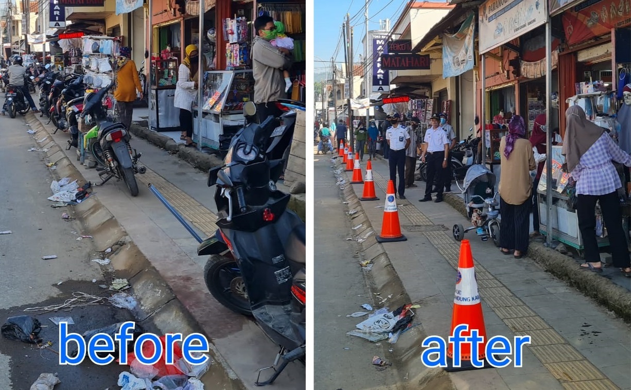 Ahirnya Trotoar di Soreang Kembali dengan Fungsinya setelah Dishub Bertindak