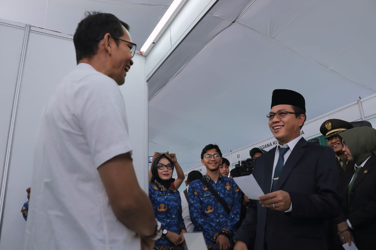 Bupati Bandung Dadang Supriatna meninjau Job Fair Spirit Bedas di Plaza Upakarti, Soreang, Rabu (1/10/25).