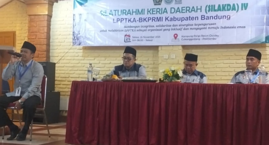 PASIRJAMBU, balebandung.com – Dewan Pengurus Daerah Badan Komunikasi Pemuda Remaja Masjid Indonesia (DPD BKPRMI) Kabupaten Bandung menggelar Silaturahmi Kerja Daerah (Silakda) Lembaga Pembinaan dan Pengembangan Taman Kanak-Kanak Al-Qur’an (LPPTKA) ke-IV, di Kampung Pago, Kecamatan Pasirjambu Kabupaten Bandung, Selasa (45/11/2025).