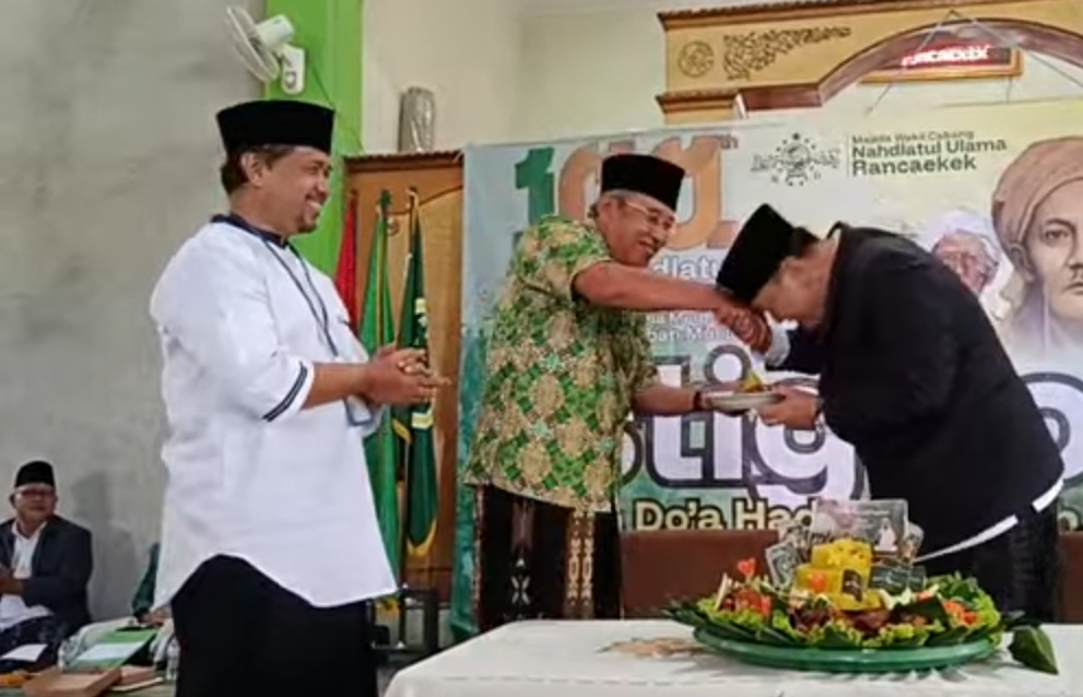 “Selamat datang di Rancaekek khususnya kepada sesepuh kita semua Rois Syuriah PCNU Kabupaten Bandung Pak Kiai Haji Haedar Mustofa Kamal. Atas nama Pemerintah Kabupaten Bandung, Pemerintah Kecamatan Rancaekek mengucapkan selamat memperingati Hari Lahir NU ke-100 Masehi,” ucap Gugum yang juga selaku Kabag Tata Pemerintahan Setda Kabupaten Bandung ini.