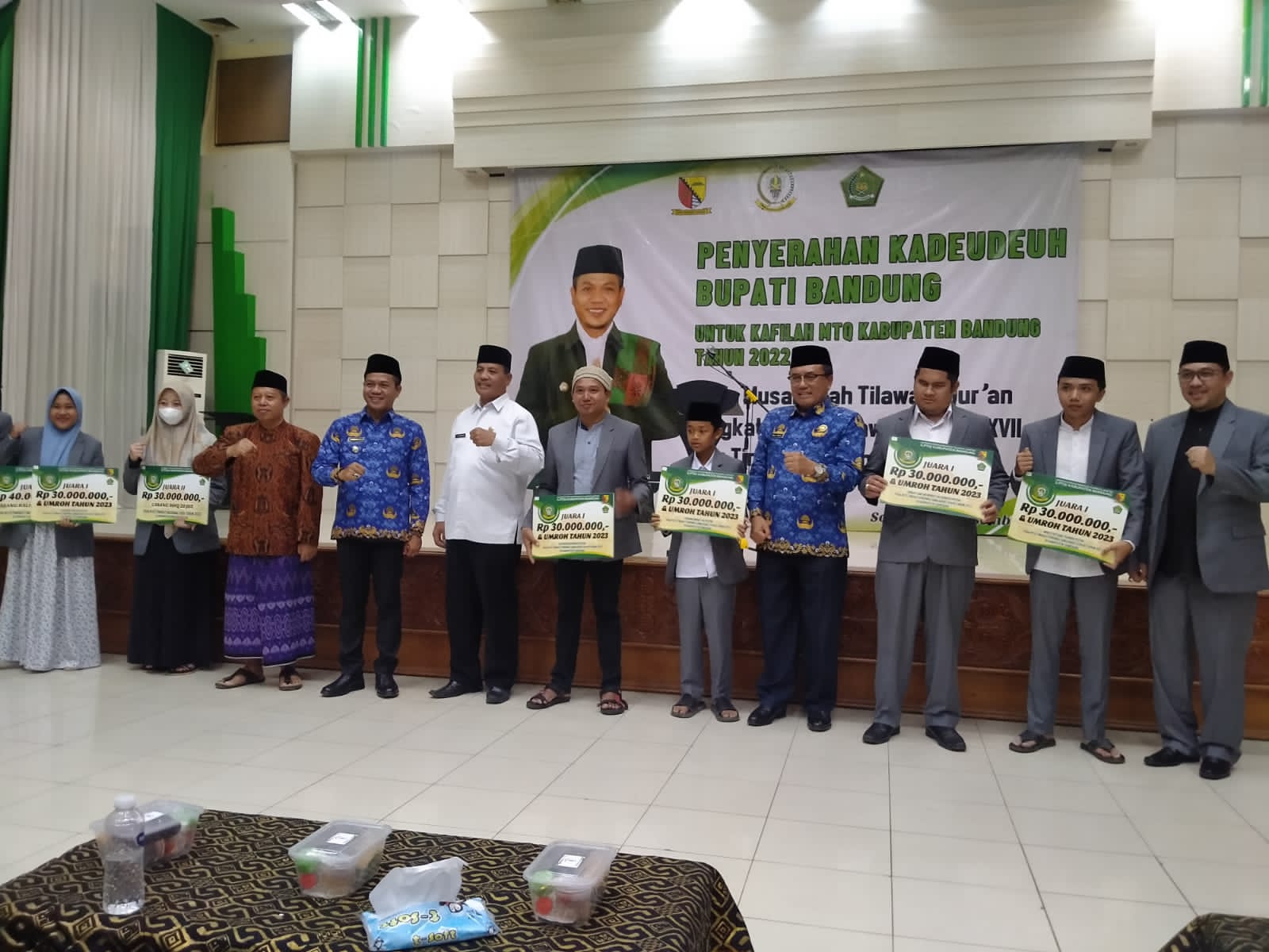 Bupati Bandung Dadang Supriatna mengatakan, pemberian uang kadeudeuh kepada para juara MTQ tingkat provinsi dan nasional 2022 itu sebagai bentuk perhatian dari Pemerintah Kabupaten (Pemkab) Bandung.