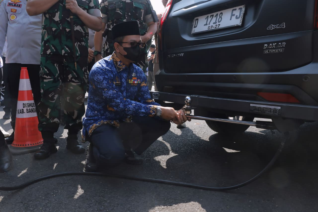 Bupati Bandung lantas memasang alat uji pada knalpot kendaraan dinas guna memastikan kelayakan kendaraan operasional Pemkab Bandung sebelum dilakukan uji emisi terhadap kendaraan milik masyarakat.