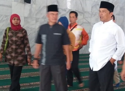 Bupati Bandung Dadang Naser bersama guru honorer di Masjid Al Fathu Soreang, Jumat (14/9/18).