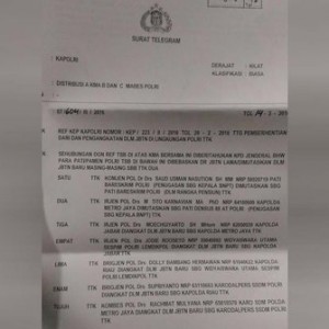 Rotasi tersebut tercantum dalam Surat Telegram Kapolri Nomor ST1604/III/2016, yang diterbitkan Senin (14/3). Berdasar informasi Biro Penerangan Masyarakat Divisi Humas Polri, selain Jodie dan Moechgi, Mabes Polri juga merotasi Kapolda Metro Jaya Irjen Pol Tito Karnavian yang diangkat menjadi Kepala Badan Nasional Penanggulangan Terorisme (BNPT). Dengan menjabat sebagai Kepala BNPT, Tito dipastikan akan mengalami kenaikan pangkat menjadi Komisaris Jenderal atau berbintang tiga.