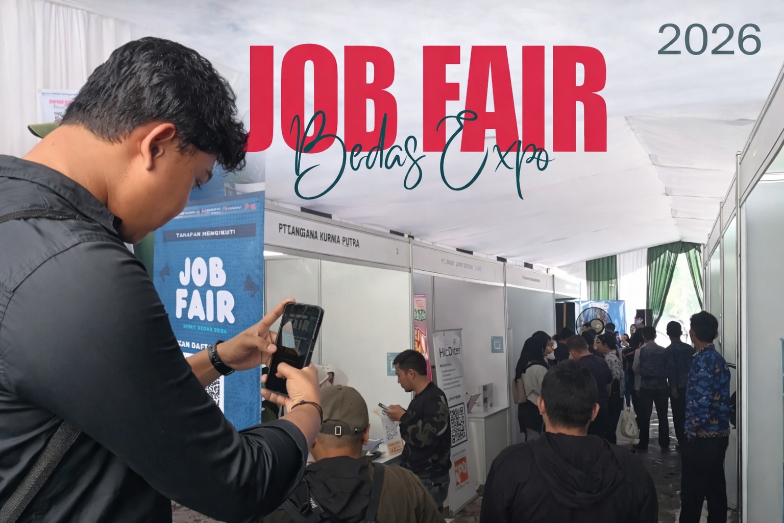 Job fair yang digelar 17–18 April ini disambut antusias masyarakat. Ribuan pencaker memadati lokasi kegiatan sejak hari pertama untuk mencari peluang kerja yang tersedia.