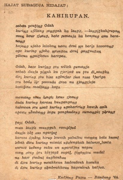 kuring nyelang tanggah ka langit, — langit kahirupan