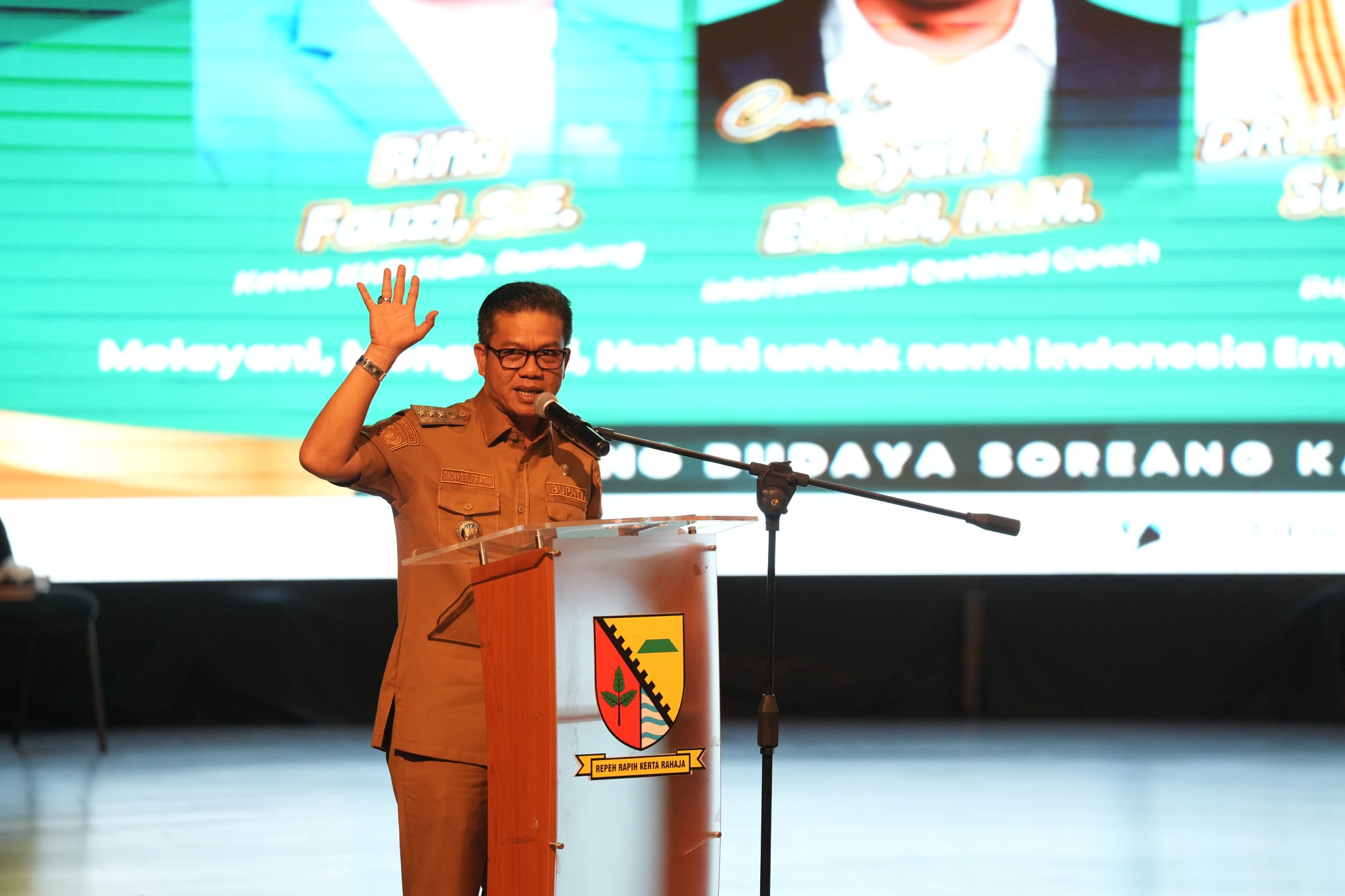 Bupati Bandung Dadang Supriatna saat Seminar Nasional “How To Be a Great Teacher” di Gedung Budaya Soreang, Selasa (11/11/25).