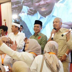 BALEENDAH, Balebandung.com – Calon Bupati Bandung nomor 2 Dadang Supriatna bersilaturahmi ke Padepokan Giri Harja 3 pimpinan Ki Dalang Dadan Sunandar Sunarya di Kelurahan Jelekong, Kecamatan Baleendah, Kabupaten Bandung, Kamis (24/10/2024). Kehadiran Cabup Dadang Supriatna disambut antusias para seniman budayawan.