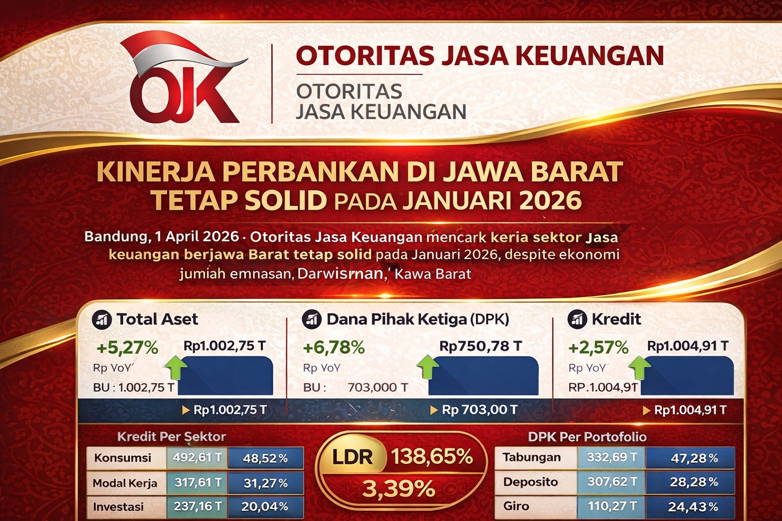 “Kami melihat sektor jasa keuangan di Jawa Barat masih mampu menjaga stabilitas dan tumbuh positif. Ini menunjukkan kepercayaan masyarakat terhadap perbankan tetap kuat,” ujar Darwisman di Bandung, Rabu (1/4/2026).