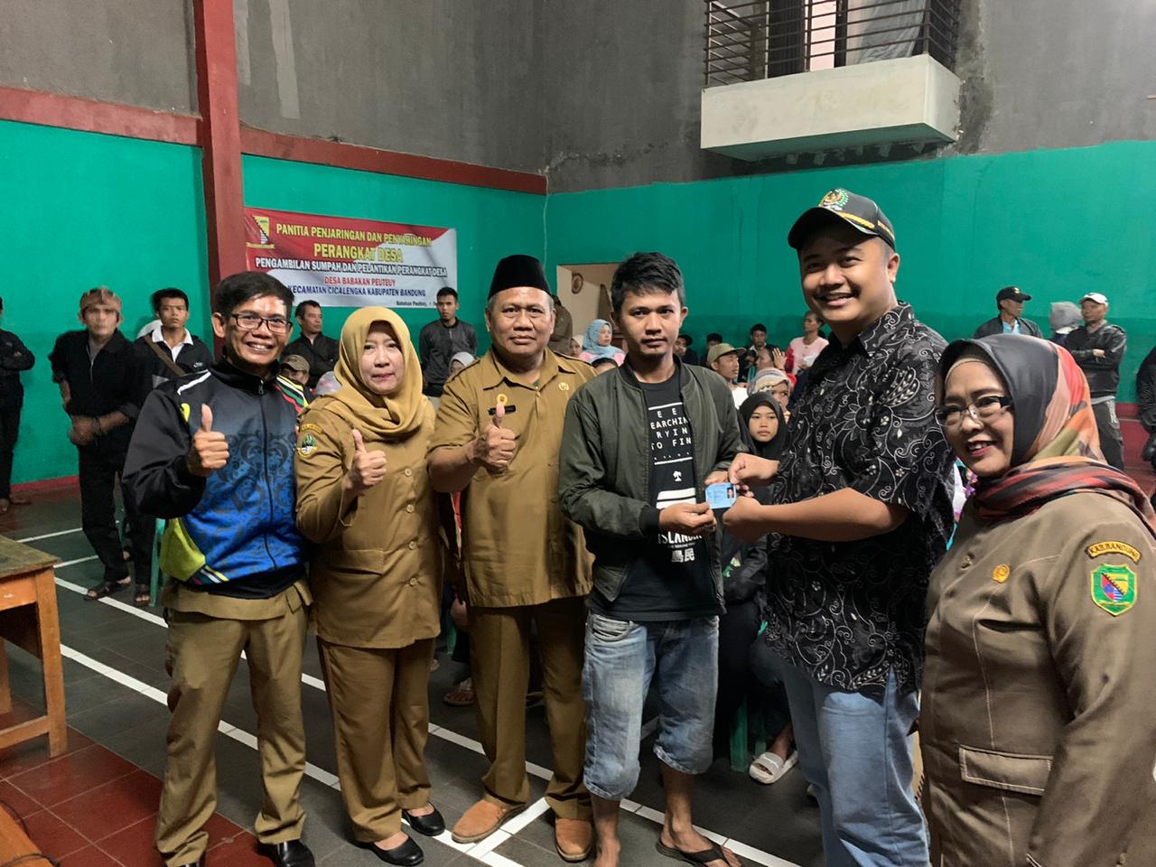 Anggota DPRD Kab Bandung Mochamad Lutfhi Hafiyyan (kanan) saat meninjau pelayanan kependudukan di Desa Babakan Peuteuy Kec Cicalengka Kab Bandung, Rabu (19/2/20). by iwa/bbcom