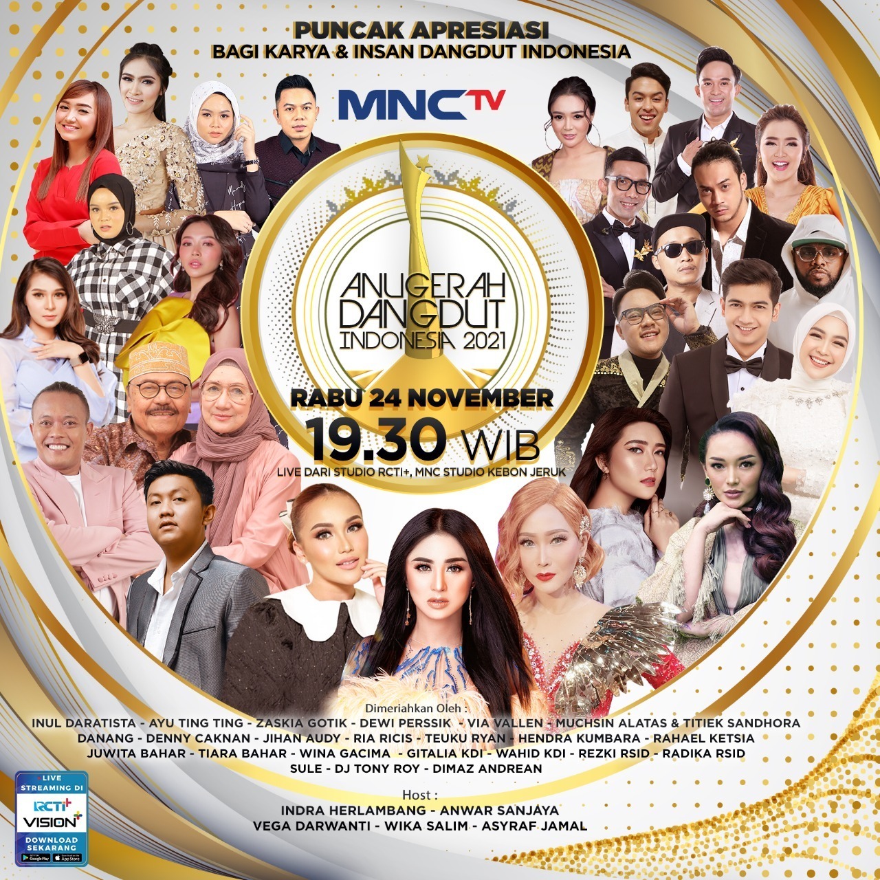 Saksikan Anugerah Dangdut Indonesia 2021 yang akan tanyang secara LIVE malam nanti 24 November pukul 19.30 wib di Studio RCTI+ MNC Studios, Kebon Jeruk, Jakarta Barat. Hanya di MNCTV, Selalu di hati.***