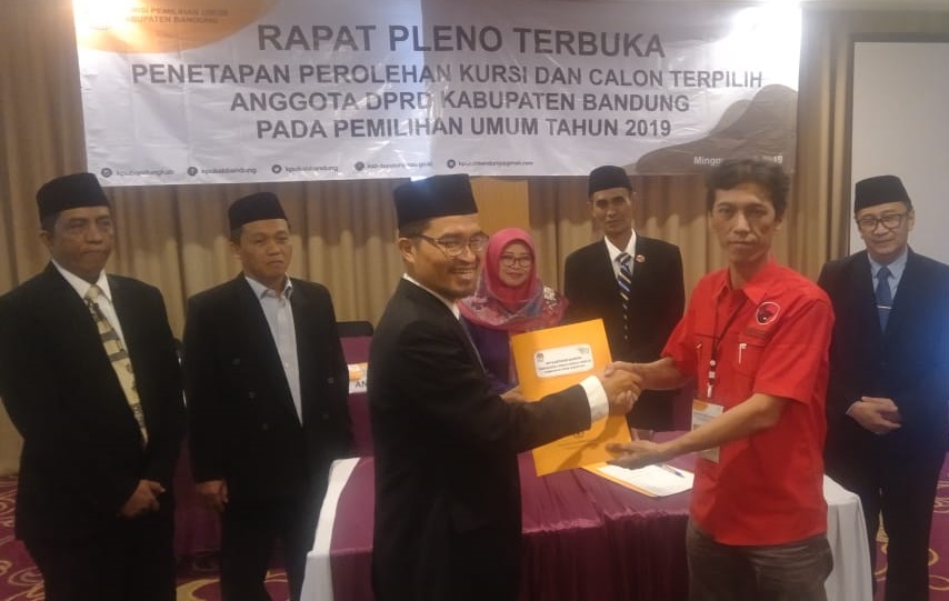 SOREANG, Balebandung.com – Dalam rapat pleno terbuka perolehan kursi partai politik (parpol) hasil Pemilihan Legislatif (Pileg) 2019 tingkat Kabupaten, yang digelar KPU Kabupaten Bandung di Hotel Sahid Soreang, Minggu, (21/7/19), dinyatakan sebanyak 55 caleg (di Pileg lalu) resmi lolos jadi anggota DPRD Kabupaten Bandung untuk periode tahun 2019- 2024.