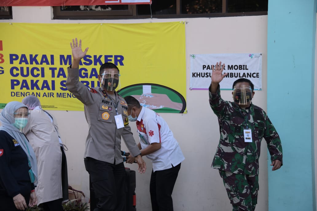 BANDUNG, Balebandung.com – Pangdam III/Siliwangi Mayjen TNI Nugroho Budi Wiryanto, menjadi relawan uji vaksin Covid-19. Selain Pangdam, Gubernur Jabar M. Ridwan Kamil, Kapolda Jabar Irjen Pol Rudy Sufahriadi dan Kajati Jabar Ade Edy Adiyaksa juga ikut menjadi relawan, yang digelar di Puskesmas Garuda Jalan Dadali No.81 Kelurahan Garuda Kota Bandung, Selasa (25/8/2020).