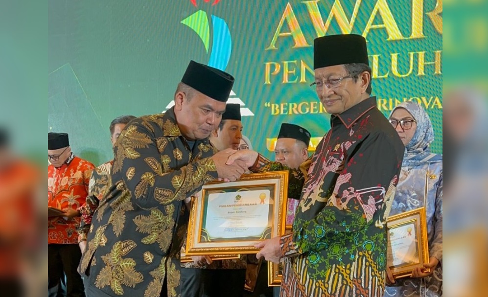JAKARTA, balebandung.com – Bupati Bandung Dadang Supriatna menerima penghargaan dari Kementerian Agama atas perhatian dan bantuan bupati dalam penguatan fungsi penyuluh Agama Islam di Kabupaten Bandung.