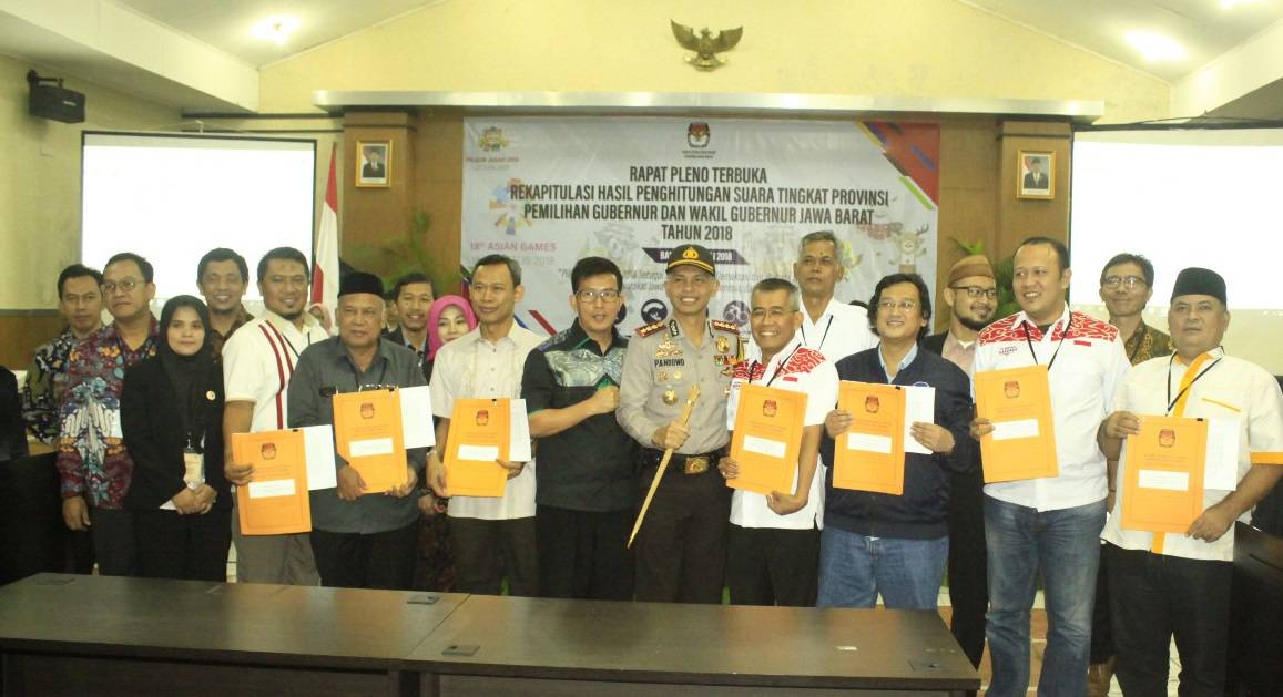 Data itu merupakan hasil rekapitulasi suara Pilgub pada Rapat Pleno Terbuka KPU Jabar di Jl. Garut No. 11 Bandung, Minggu (8/7/18).