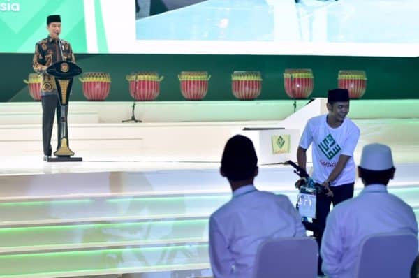 Setelah itu, Kepala Negara kemudian naik ke atas panggung untuk memberikan sambutannya. Pada akhir sambutan, ia pun memberikan kuis berhadiah sepeda kepada para ulama muda dan santri yang hadir.