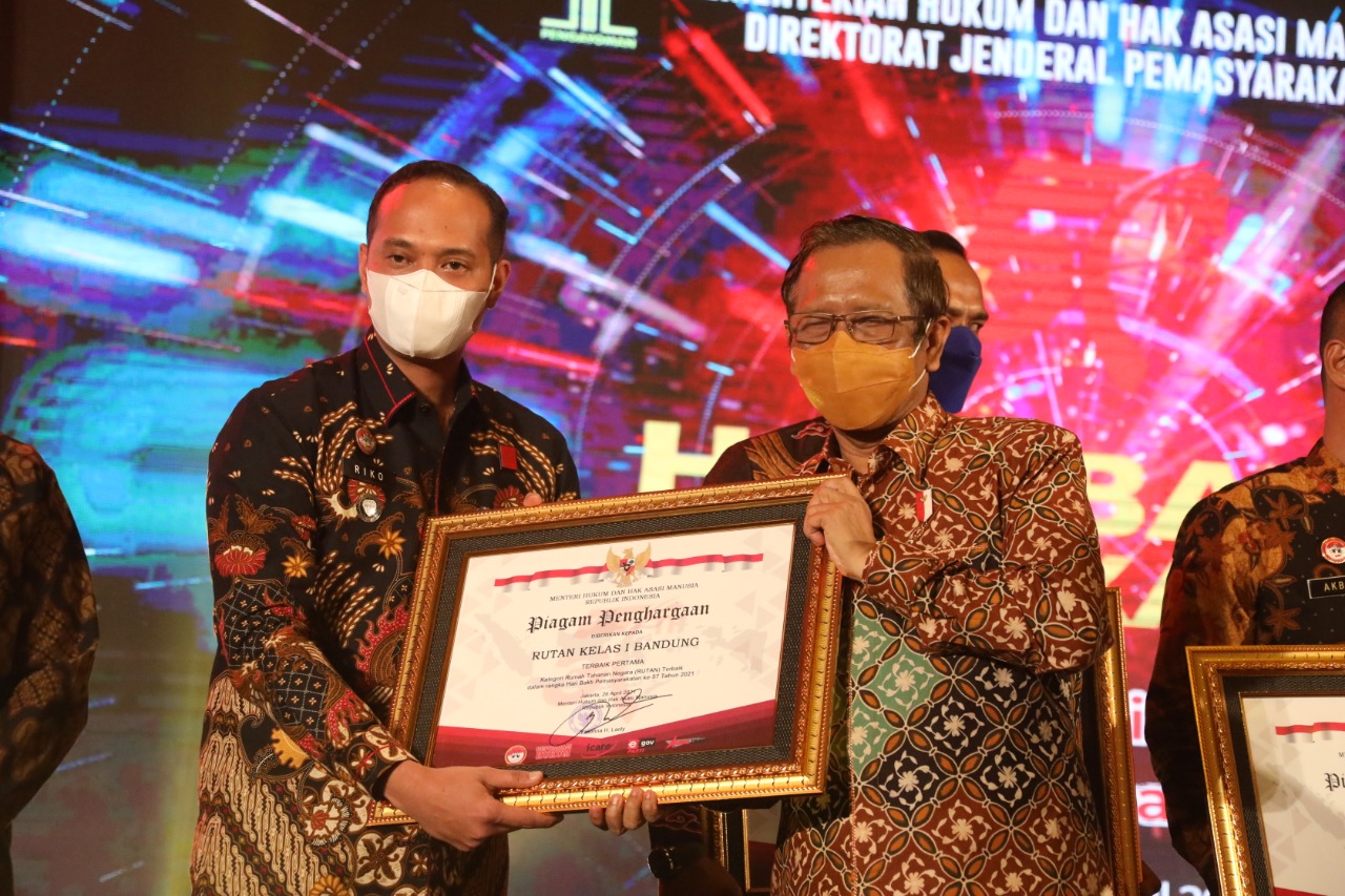 Dalam acara tersebut, Karutan mendapatkan Piagam Penghargaan yang diberikan langsung oleh Menteri Koordinator Bidang Politik, Hukum dan Keamanan, Mahfud MD.