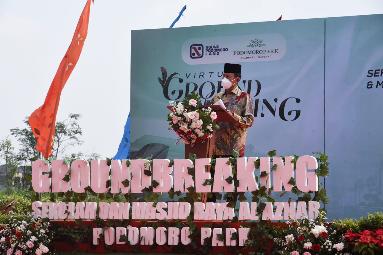 Bupati Bandung Dadang Supriatna saat groundbreaking Sekolah Islam Al Azhar dan Masjid Raya Al Azhar, Podomoro Park, Kec Bojongsoang, Kab Bandung, Senin (9/8/21).poto: by humas