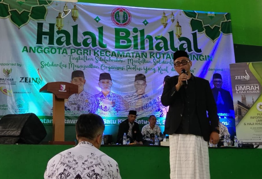 Pesan itu disampaikannya saat memberikan tausiyah pada kegiatan halal bihalal anggota PGRI Kecamatan Kutawaringin di GOR Saluyu, Desa Gajahmekar, Kecamatan Kutawaringin, Kabupaten Bandung, Jumat (17/4/2026).