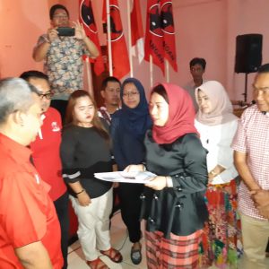 BALEENDAH, Balebandung.com – Yena Iskandar Ma’soem, pengusaha Al Ma’soem Group menjadi bakal calon Bupati/Wakil Bupati Bandung 2020-2025 pertama yang mengembalikan formulir pendaftaran, di Sekretariat PDI Perjuangan Kabupaten Bandung, Jl Jaksa Naranata Baleendah, Kamis (19/9/19) pukul 19.00 WIB.